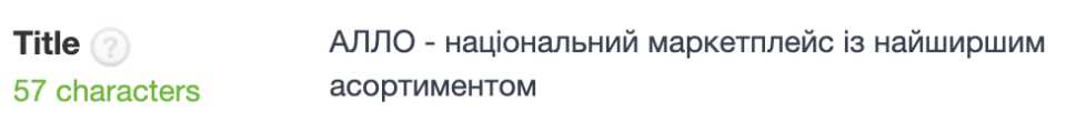 Не забуваймо і за видиму частину title на сторінці результатів пошуку. І пишемо його таким чином, щоб тут було головне ключове слово, і щоб ця частина була інформативна та привертала увагу. А та частина, яка не потрапить на сторінку видачі – це чудова нагода вписати додаткові ключові слова або їхні частини, щоб покращити ранжування сторінки за більшою кількістю запитів.
