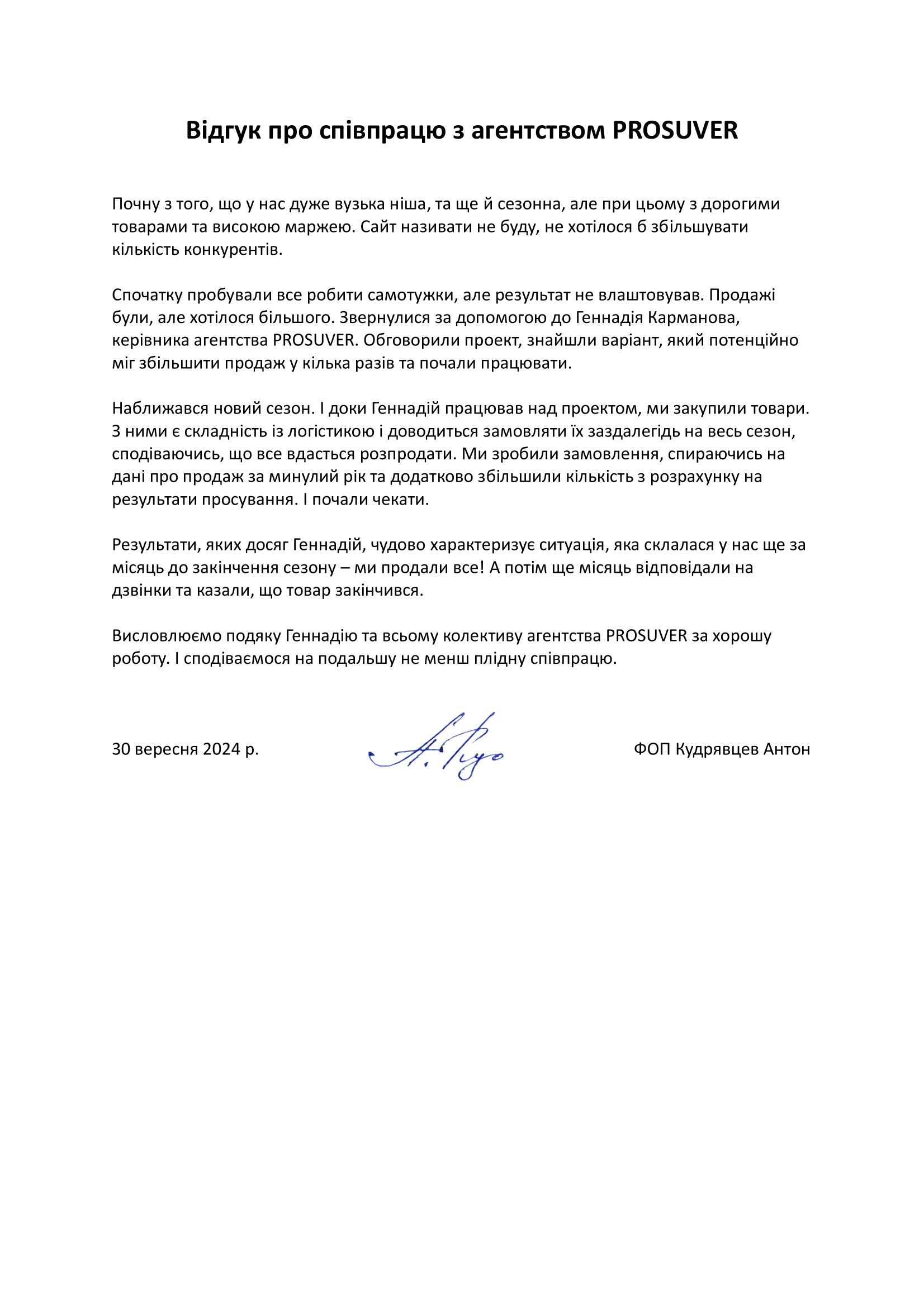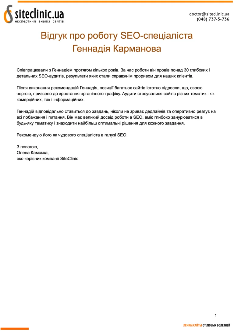Співпрацювали з Геннадієм протягом кількох років. За час роботи він провів понад 30 глибоких і детальних SEO-аудитів, результати яких стали справжнім проривом для наших клієнтів.