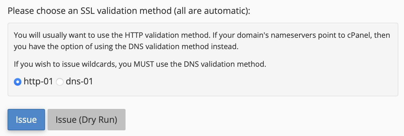 В блоке «Issue a new certificate» находите домен, для которого нужно его установить и нажимаете «Issue»: