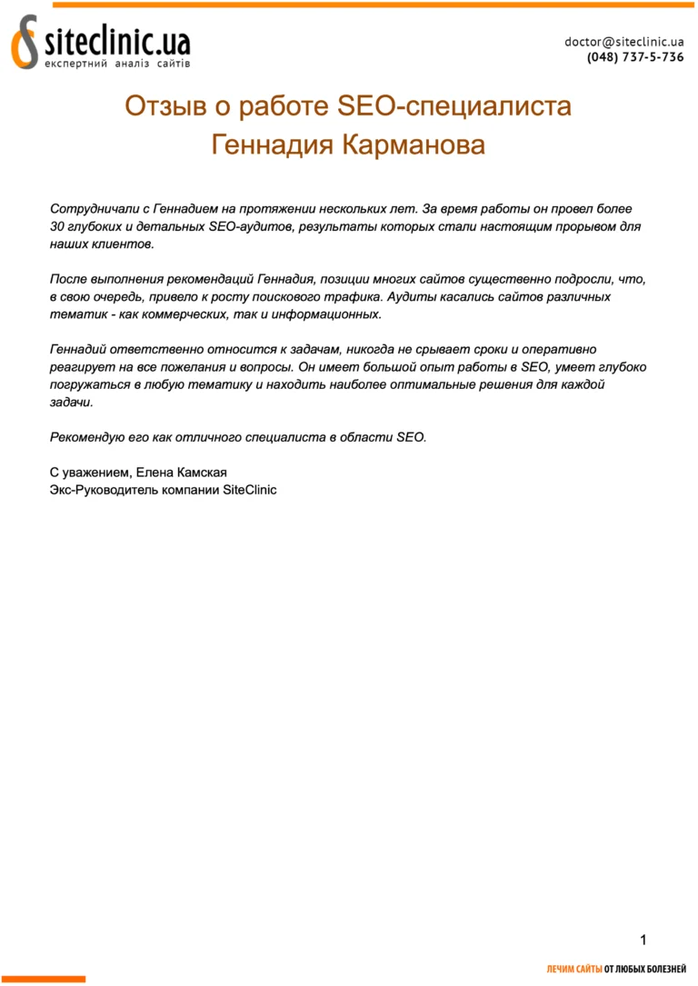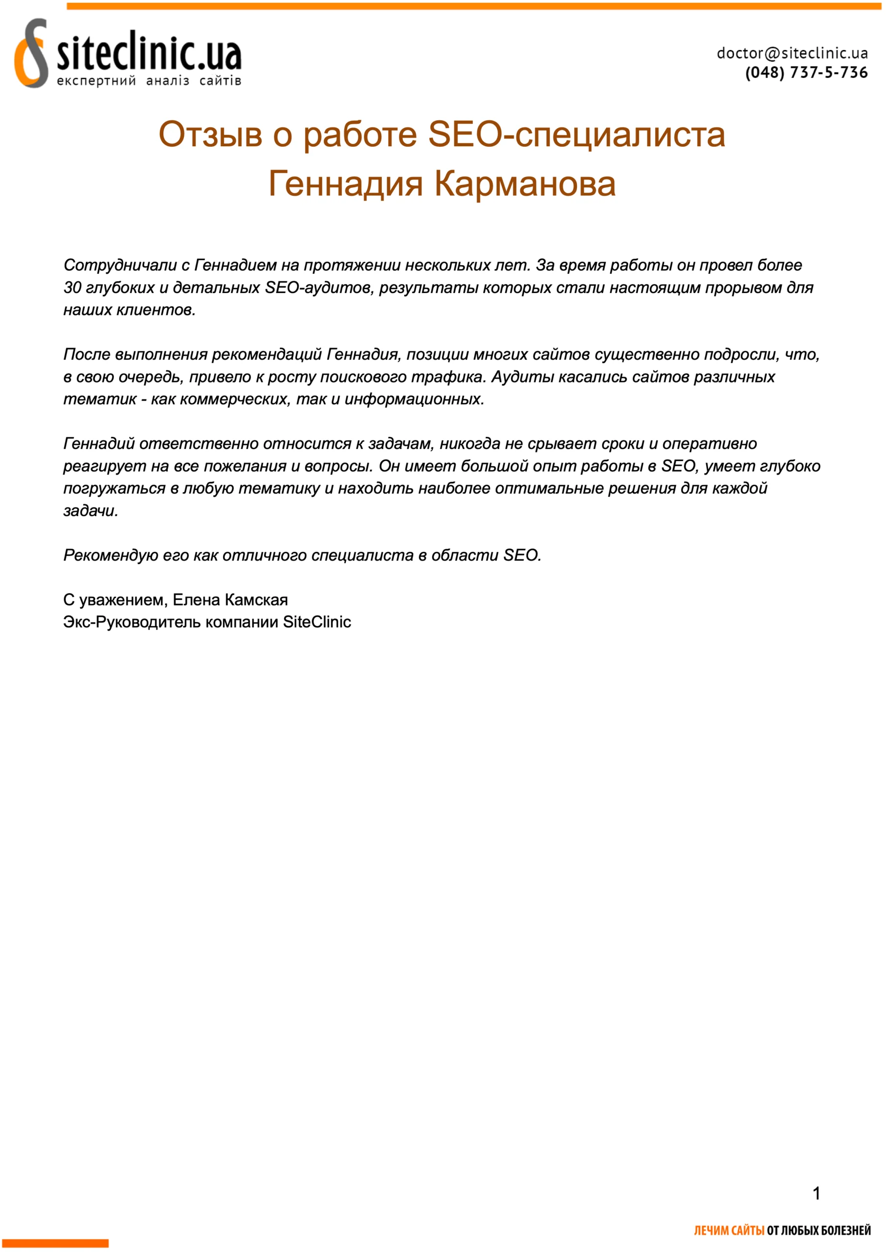 Сотрудничали с Геннадием на протяжении нескольких лет. За время работы он провел более 30 глубоких и детальных SEO-аудитов, результаты которых стали настоящим прорывом для наших клиентов.