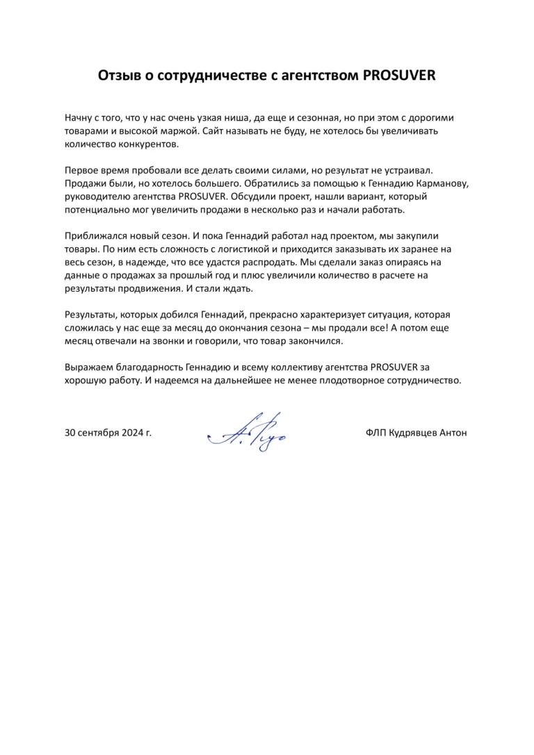 Результаты, которых добился Геннадий, прекрасно характеризует ситуация, которая сложилась у нас еще за месяц до окончания сезона – мы продали все! А потом еще месяц отвечали на звонки и говорили, что товар закончился.